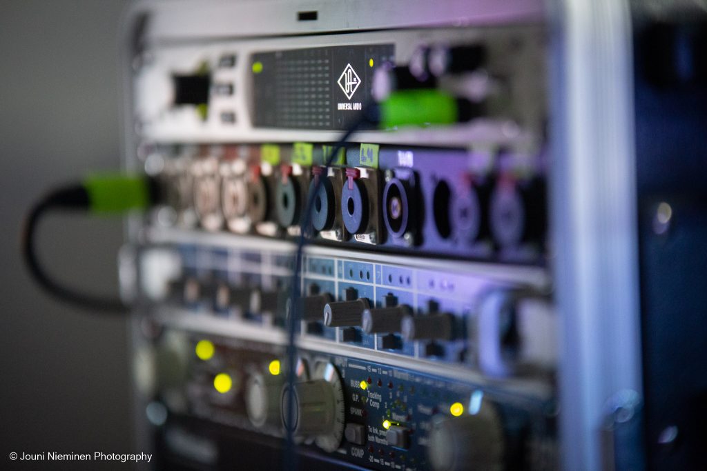 Studion sydämenä sykkii Universal Audion Apollo Duo -interface. Kuunteluna huoneessa on Dynaudio Acousticsin huippumonitorit. Lisäksi käytössä on tarkoin valittuja analogilaitteita sekä laaja valikoima plug-inejä muun muassa Steven Slatelta, Universal Audiolta, Voxengolta…